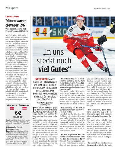Marco Rossi (21) steht heute im WM-Spiel gegen die USA im Fokus der NHL-Scouts. Der Stürmer konzentriert sich auf Österreich, und übt Kritik. Von Martin Quendler aus Tampere