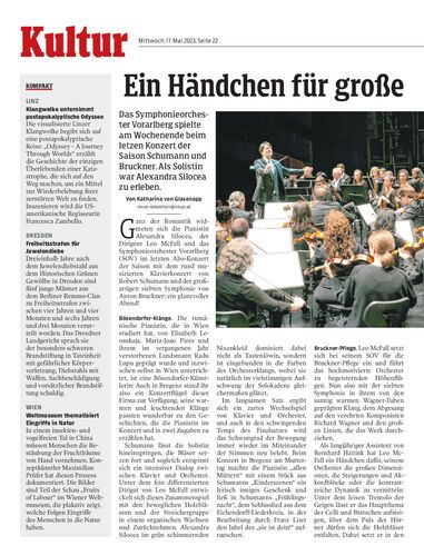 Das Symphonieorchester Vorarlberg spielte am Wochenende beim letzen Konzert der Saison Schumann und Bruckner. Als Solistin war Alexandra Silocea zu erleben.