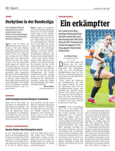 Am morgigen Feiertag kommt es zum ersten Ländle-Derby in der Damen-Tennis-Bundesliga zwischen dem TC Dornbirn und dem TC Bludenz.