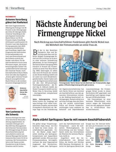 Nach Rückzug aus Geschäftsführer-Funktionen gibt Patrik Nickel nun die Mehrheit der Firmenanteile an seine Frau ab.