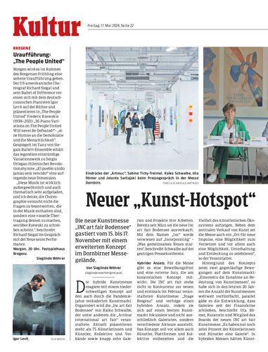 Die neue Kunstmesse „INC art fair Bodensee“ gastiert vom 15. bis 17. November mit einem erweiterten Konzept im Dornbirner Messegelände.