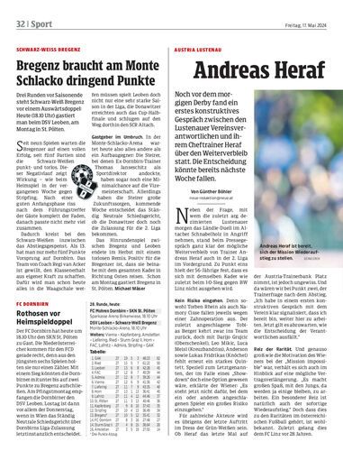 Noch vor dem morgigen Derby fand ein erstes konstruktives Gespräch zwischen den Lustenauer Vereinsverantwortlichen und ihrem Cheftrainer Heraf über den Weiterverbleib statt. Die Entscheidung könnte bereits nächste Woche fallen.