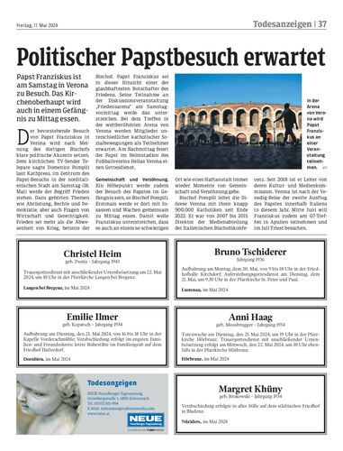 Papst Franziskus ist am Samstag in Verona zu Besuch. Das Kirchenoberhaupt wird auch in einem Gefängnis zu Mittag essen.