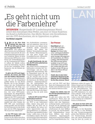 Burgenlands SP-Landeshauptmann Niessl zitiert den Soziologen Max Weber, um eine rot-blaue Koalition im Bund zu befürworten. Das Motto: Besser rote Kernthemen mit der FPÖ durchsetzen, als in Opposition zu gehen. Von Michael Jungwirth