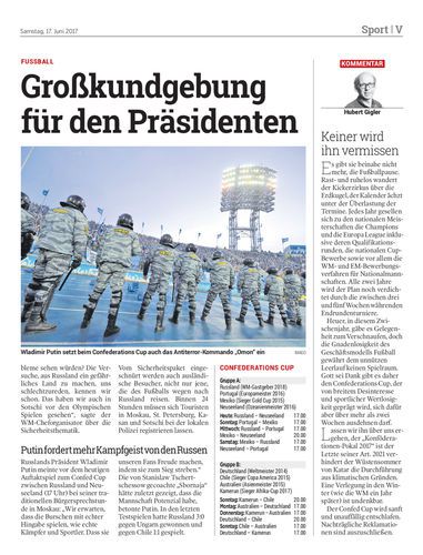 Der Confederations Cup als Generalprobe für die Fußballweltmeisterschaft 2018 in Russland spielt Staatschef Wladimir Putin in die Hände. Die WM wird sein nächstes Prestigeprojekt. Sondererlässe werden zwar kritisiert, aber hingenommen.