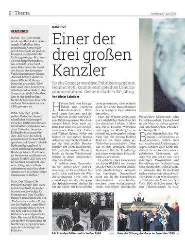 So ein Coup ist wenigen Politikern gegönnt: Helmut Kohl konnte sein geteiltes Land zusammenführen. Gestern starb er 87-jährig. Von Dieter Schröder