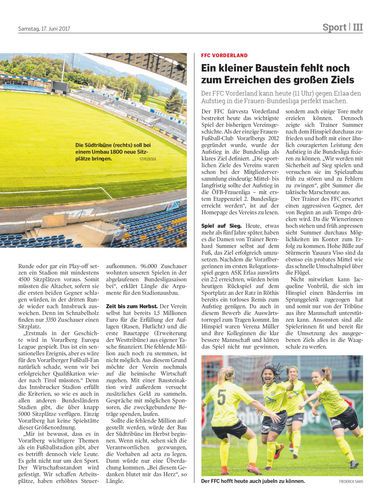 Der FFC Vorderland kann heute (11 Uhr) gegen Erlaa den Aufstieg in die Frauen-Bundesliga perfekt machen.
