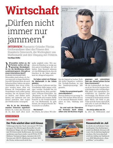 Runtastic-Gründer Florian Gschwandtner über die Fitness des Standorts Österreich, die Wichtigkeit von Mathematik und den Umgang mit Fehlern. Von Klaus Höfler