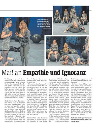 Martin Grubers Aktionstheater Ensemble präsentierte am Donnerstag die Vorarlberg-Premiere von „Morbus Hysteria“ in Bregenz.