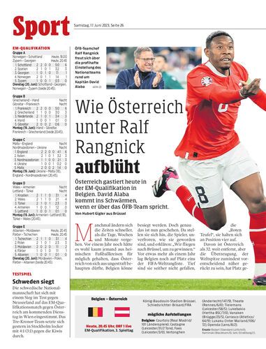 Österreich gastiert heute in der EM-Qualifikation in Belgien. David Alaba kommt ins Schwärmen, wenn er über das ÖFB-Team spricht. Von Hubert Gigler aus Brüssel