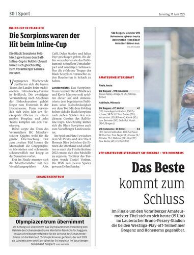 Die Black Scorpions Feldkirch gewinnen den Ball-Inline-Cup in Feldkirch und küren sich gleichzeitig zum Vorarlberger Landesmeister.