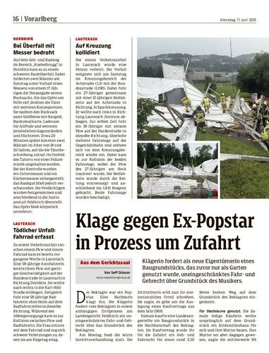 Klage gegen Ex-Popstar in Prozess um Zufahrt