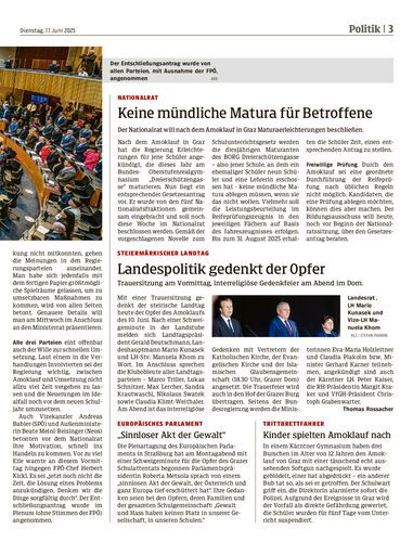 Der Nationalrat will nach dem Amoklauf in Graz Maturaerleichterungen beschließen.