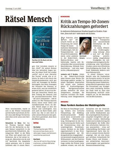 Im Theater am Saumarkt war diese Woche der Autor Thomas Sautner zu Gast, und las aus seinem Roman „Pavillon 44“. Auf der Suche nach zwei entlaufenen Psychiatriepatienten findet er jede Menge Verrückte.