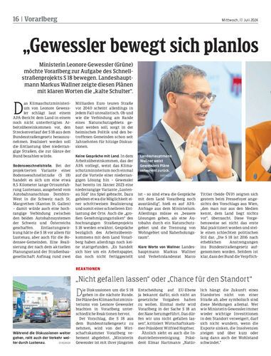 Ministerin Leonore Gewessler (Grüne) möchte Vorarlberg zur Aufgabe des Schnellstraßenprojekts S 18 bewegen. Landeshauptmann Markus Wallner zeigte diesen Plänen mit klaren Worten die „kalte Schulter“.