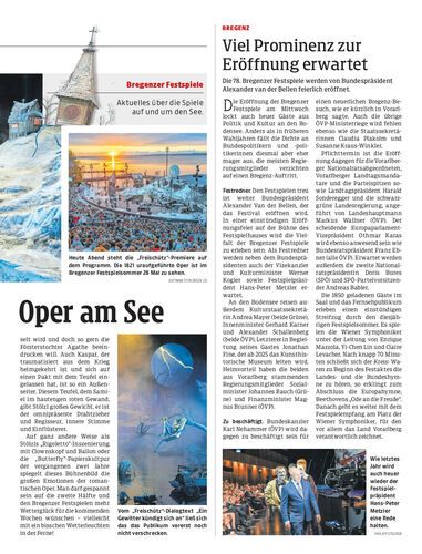 Die 78. Bregenzer Festspiele werden von Bundespräsident Alexander van der Bellen feierlich eröffnet.