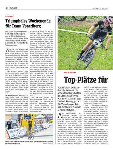 Von 12. bis 14. Juli fanden die österreichischen Meisterschaften im Cross-Country sowie Shorttrack im steirischen Stattegg statt. Die Vorarlberger Teilnehmer zeigten sich in Medaillenlaune.