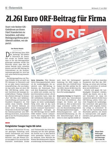 Statt wie bisher GIS-Gebühren an ihren fünf Standorten zu bezahlen, soll eine Reinigungsfirma jetzt überall zahlen, wo sie putzt.