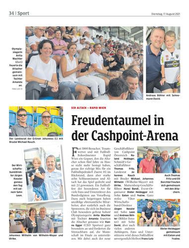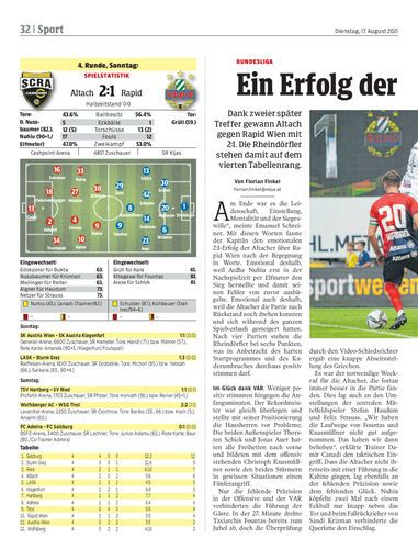 Dank zweier später Treffer gewann Altach gegen Rapid Wien mit 2:1. Die Rheindörfler stehen damit auf dem vierten Tabellenrang.