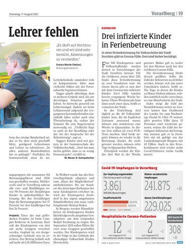 In einer Ferienbetreuung für Volksschüler der Stadt Dornbirn gibt es Corona-Fälle. Drei sind bisher bestätigt.