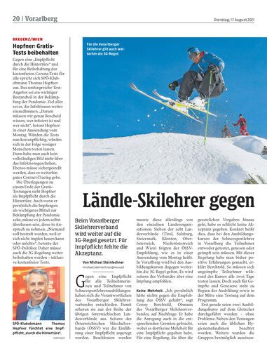 Beim Vorarlberger Skilehrerverband wird weiter auf die 3G-Regel gesetzt. Für Impfpflicht fehlte die Akzeptanz.