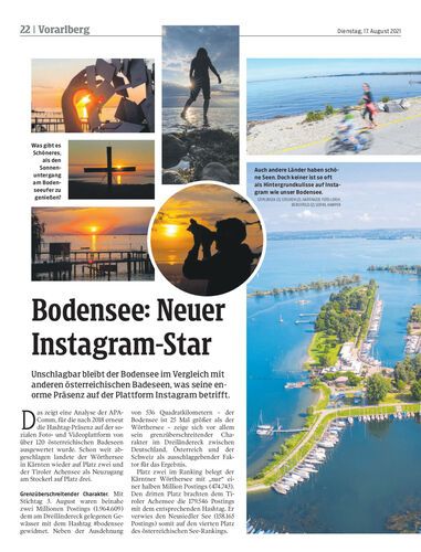 Unschlagbar bleibt der Bodensee im Vergleich mit anderen österreichischen Badeseen, was seine enorme Präsenz auf der Plattform Instagram betrifft.