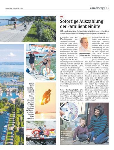 FPÖ-Landesobmann Christof Bitschi ist überzeugt: „Familien dürfen nicht weiterhin im Regen stehen gelassen werden.“