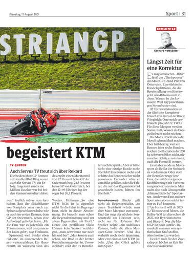 Auch am Tag danach schwärmt man allerorts von Brad Binders Husarenritt im Regen, der KTM ein perfektes Wochenende bescherte.