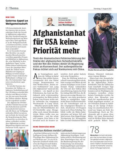 Trotz der dramatischen Fehleinschätzung der Stärke der afghanischen Sicherheitskräfte und der Not des Volkes denkt US-Regierung nicht an Kurswechsel. Der außenpolitische Fokus richtet sich auf Konkurrenz mit China.