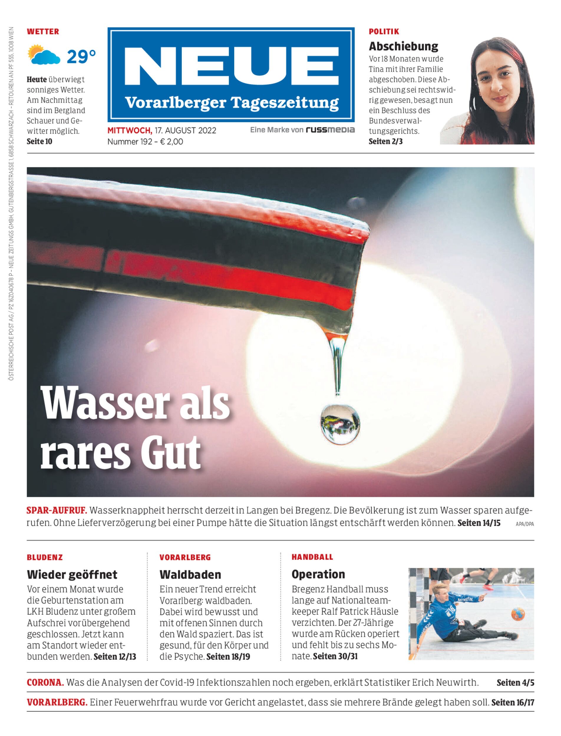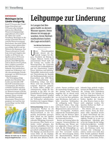 In Langen bei Bregenz heißt es derzeit Wasser sparen. Denn dieses ist knapp geworden. Erste Notfallmaßnahmen haben die Lage entschärft.