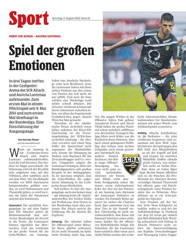 In drei Tagen treffen in der Cashpoint-Arena der SCR Altach und Austria Lustenau aufeinander. Zum ersten Mal in einem Pflichtspiel seit 9. Mai 2014 und zum ersten Mal überhaupt in der Bundesliga. Eine Einschätzung der Ausgangslage.