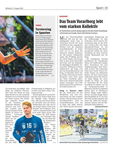 In Tschechien und im Elsass gab es für das Team Vorarlberg viel Grund zur Freude. Stari wird Vierter in Steyr.