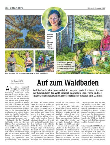 Waldbaden ist eine neue Aktivität. Langsam und mit offenen Sinnen wird dabei durch den Wald spaziert. Das soll die körperliche und seelische Gesundheit stärken. Eine Reportage vom Waldbad in Damüls.