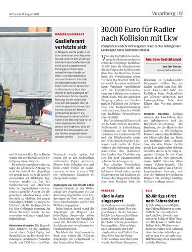 Zivilprozess endete mit Vergleich. Nach rechts abbiegender Lastwagen hatte Radfahrer erfasst.