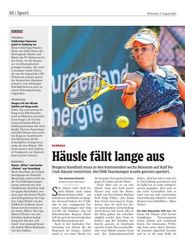 Bregenz Handball muss in den kommenden sechs Monaten auf Ralf Patrick Häusle verzichten. Der ÖHB-Teamkeeper wurde gestern operiert.