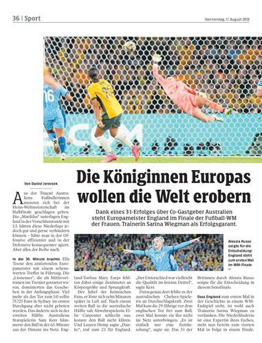 Dank eines 3:1-Erfolges über Co-Gastgeber Australien steht Europameister England im Finale der Fußball-WM der Frauen. Trainerin Sarina Wiegman als Erfolgsgarant.