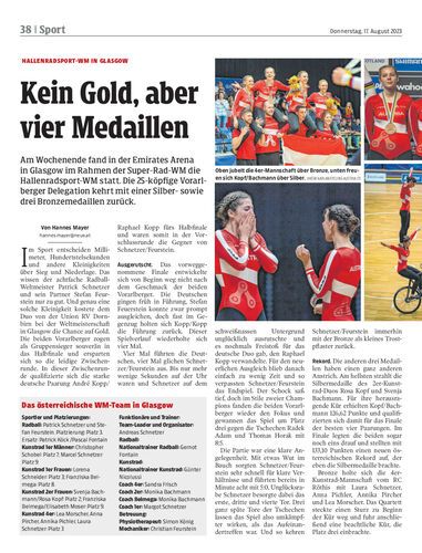 Am Wochenende fand in der Emirates Arena in Glasgow im Rahmen der Super-Rad-WM die Hallenradsport-WM statt. Die 25-köpfige Vorarl-berger Delegation kehrt mit einer Silber- sowie drei Bronzemedaillen zurück.