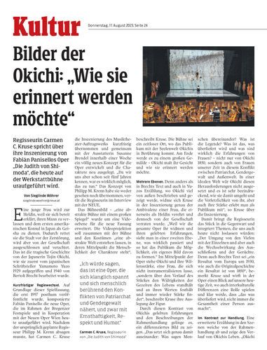 Regisseurin Carmen C. Kruse spricht über ihre Inszenierung von Fabián Panisellos Oper „Die Judith von Shimoda“, die heute auf der Werkstattbühne uraufgeführt wird.