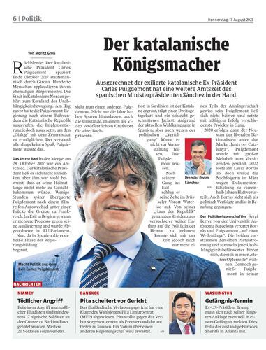 Ausgerechnet der exilierte katalanische Ex-Präsident Carles Puigdemont hat eine weitere Amtszeit des spanischen Ministerpräsidenten Sánchez in der Hand.