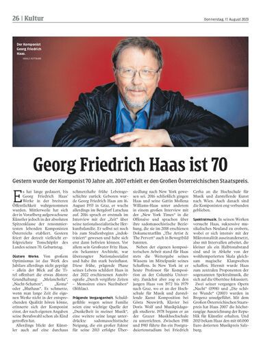 Gestern wurde der Komponist 70 Jahre alt. 2007 erhielt er den Großen Österreichischen Staatspreis.