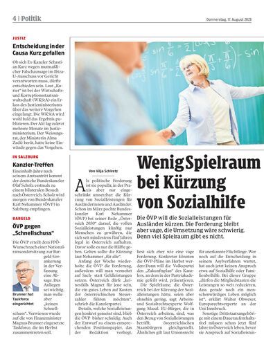 Die ÖVP will die Sozialleistungen für Ausländer kürzen. Die Forderung bleibt aber vage, die Umsetzung wäre schwierig. Denn viel Spielraum gibt es nicht.