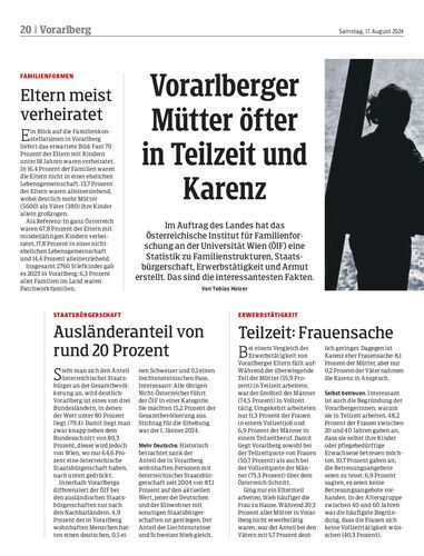 Vorarlberger Mütter öfter in Teilzeit und Karenz