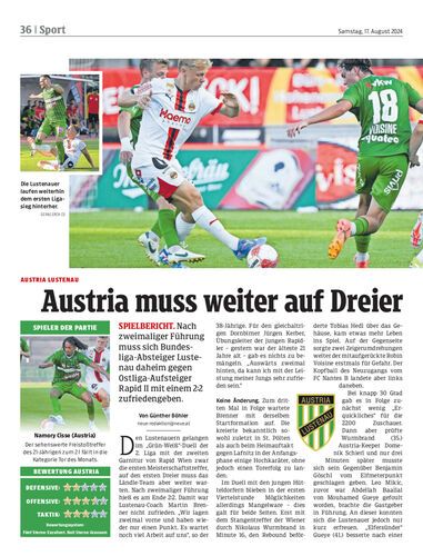 Spielbericht. Nach zweimaliger Führung muss sich Bundesliga-Absteiger Lustenau daheim gegen Ostliga-Aufsteiger Rapid II mit einem 2:2 zufriedengeben.