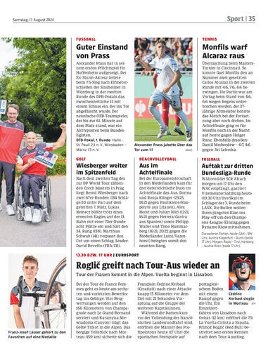 Zum Auftakt der dritten RLW-Runde gewinnen die Altach Juniors mit 3:1 in Röthis. Heute steht der VfB Hohenems vor dem schweren Auswärtsspiel beim amtierenden Westliga-Meister Austria Salzburg. In Egg wird Fabian Fetz geehrt.