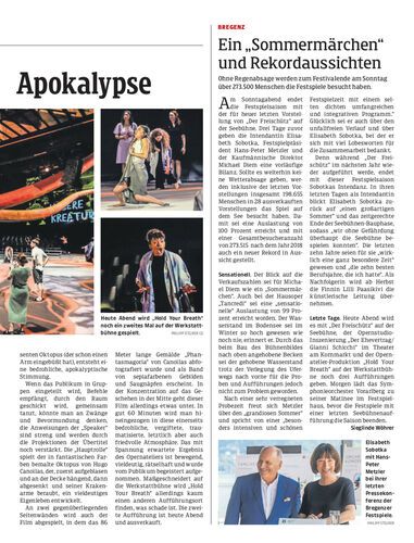 Ohne Regenabsage werden zum Festivalende am Sonntag über 273.500 Menschen die Festspiele besucht haben.