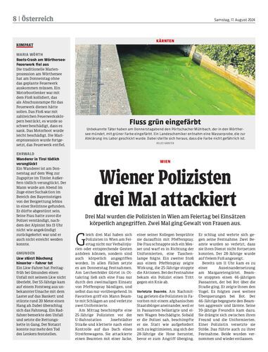 Drei Mal wurden die Polizisten in Wien am Feiertag bei Einsätzen körperlich angegriffen. Zwei Mal ging Gewalt von Frauen aus.