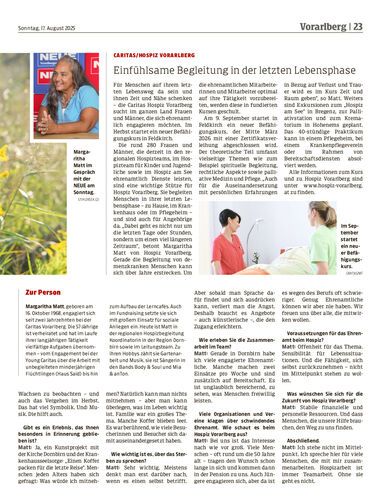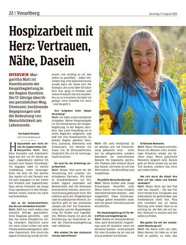 Interview. Margaritha Matt ist Koordinatorin der Hospizbegleitung in der Region Dornbirn. Die 57-Jährige über ihren persönlichen Weg, Ehrenamt, berührende Begegnungen und die Bedeutung von Menschlichkeit am Lebensende.