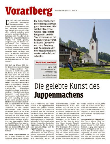 Die Juppenwerkstatt Riefensberg ist etwas ganz Besonderes. Hier wird der Bregenzerwälder Juppenstoff hergestellt und ein Trachtenmuseum mit Schaubetrieb geführt. Es ist ein Ort der Vernetzung, Beratung und Ausbildung, der den beteiligten Handwerkern eine Zukunft schenkt.