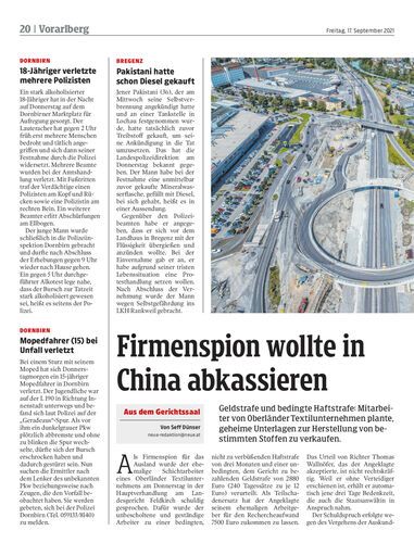 Geldstrafe und bedingte Haftstrafe: Mitarbeiter von Oberländer Textilunternehmen plante, geheime Unterlagen zur Herstellung von bestimmten Stoffen zu verkaufen.