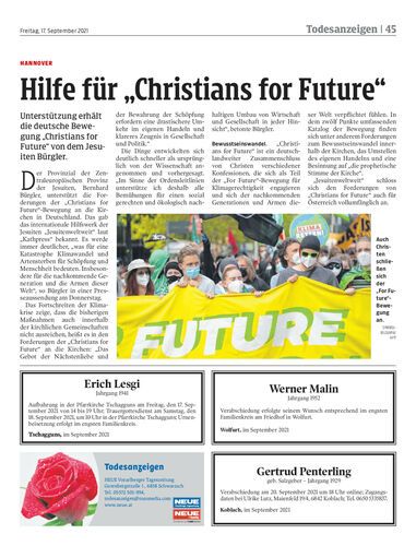 Unterstützung erhält die deutsche Bewegung „Christians for Future“ von dem Jesuiten Bürgler.